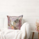 OEuvre abstraite sur un oreiller 20x 20" en coton. merveilleux, dessins peints à l'avant et à l'arrière. mauve, ivoire, lavande, vin, vert armée et citrouille.