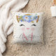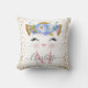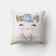 Oreiller à monogramme de princesse chatte tendance. Joli visage de princesse chat en rose gold, rose clair et paillettes dorées, nez en forme de cœur rose et grands cils noirs, avec une couronne et un arrangement floral bleu, tons roses clairs et dorés. Sur les côtés, confettis roses dorés scintillants faussement. Personnalisez facilement et ajoutez votre nom et monogramme pour rendre l'oreiller unique.