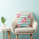Coussin floral de rose, de menthe et d'or. Pivoines d'aquarelle. Rayures en bon état et blanches