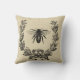 Oreiller crème avec motif d'abeille vintage français