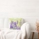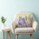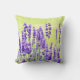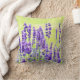 Jetez l'oreiller avec l'image des fleurs de lavande contre l'arrière - plan jaune pâle sur le devant et les pissenlits sur le dos avec un arrière - plan de lavande.