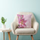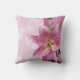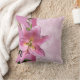 Ce joli oreiller rose pastel, vert et mauve est agrémenté de fleurs de lys Stargazer rose et jaune.