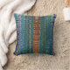 Un design rayé abstrait, vert, bleu, marron et orange, est présenté sur cet oreiller à jet. Design inhabituel !