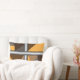 Un carré barrée et un lombaire jettent des oreillers. Barred est un design abstrait créé par Vexenwraith et se compose de formes brune, orange, bronzée et grise derrière des barres de dégradé argenté.