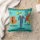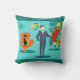Chérie, je suis à la maison ! Cet oreiller à deux jets de caricatures de l'ère de l'espace rétro vous donnera envie du couple de caricatures sur un oreiller de lancer ! L'aménagement dispose d'un arrière - plan turquoise avec des briques turquoises et d'une cheminée à cônes vert olive. Un chat noir élégant est assis sur une chaise orange élégante. Il y a une horloge turquoise murale d'étoiles et une lampe pendentif à deux étages dans les tons jaune, bleu et noir. Au centre et à l'avant, un homme d'affaires distingué, martini, en costume bleu et cravate orange. De son côté, la bombe blonde d'une femme trophée porte une robe de torse rouge et un plateau de martinis. Le côté opposé est constitué de briques turquoises et turquoise. Va-va-va-voom !