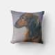 Cet coussin présente une reproduction de mon tableau original à l'huile d'un dachshund aux cheveux longs.