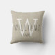 Famille ! coussin de décoration de maison personnalisée. coussin monogrammé en beige, noir et blanc personnalisé avec nom de famille en typographie superposition de police sur un arrière - plan d'effet photo en lin beige IMPRITED. Elke Clarke© Fait un cadeau idéal pour les jeunes mariés ou pour votre famille. Grand accessoire tendance et élégant pour votre chambre, chaise préférée, comme décor de maison amusant dans votre chambre familiale ou ajout décoratif formel à votre salon. Customisez avec vos noms, monogramme date initiale et mariage.