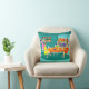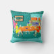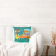 Cet oreiller Retro Women's Weekly Card Game Throw présente un dessin animé de quatre femmes modernes du milieu du siècle à une fête de poules. Ils se retrouvent dans une salle élégante. Sur un mur de briques turquoise et turquoise, vous trouverez un imprimé en toile stylisée du Globe moderne du milieu du siècle, disponible au magasin Zazzle de StrangeLittleOnion. Ils ont bon goût ! Par des portes coulissantes en verre, on peut voir les pelouses verdoyantes de la banlieue. De l'autre côté de la rue, une élégante maison orange abritant une voiture rose et blanche est garée dans le port. De retour dans la salle à manger, trois femmes sont assises à une table ronde avec une nappe orange. Il y a une rousse en robe jaune, une brune en robe verte et une blonde en robe rouge. Ils tiennent des cartes dans leurs mains. Quatre teacups sont sur la table en attendant d'être comblés par l'hôtesse aux cheveux raven dans une robe torsadée rose. Elle porte un plateau avec une carafe de thé perchée dessus. Toutes les femmes passent un moment merveilleux, mais elles devraient probablement garder un oeil sur la blonde. Si cette carte qu'elle tient derrière son dos est une indication, elle triche ! De l'autre côté de la coussin, un motif en briques turquoise et turquoise.