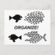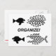 Illustration visuelle du concept "il y a de la force dans le nombre". Un grand poisson poursuit de nombreux petits poissons jusqu'à ce qu'ils s'organisent en forme de poisson encore plus grand, en tournant les tables, poursuivant le poisson qui les poursuivait à l'origine.