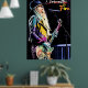 Das Bild zeigt Orianthi, eine Rockgitarrist, darstellend auf Bühne. Sie trägt einen schwarzen Hut, eine Lederjacke mit lebhaften Farben, und ihr langes blondes Haar fließt ihr den Rücken ab. Sie hält eine leuchtend farbige E-Gitarre mit aufwändigen Designs, und ihre Hand ist auf dem Freibord. Der Hintergrund ist dunkel, mit einem Mikrofonständer und einer Bühne ist sichtbar.