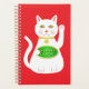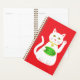 Dieser phantastische chinesische Neujahrsplaner zeigt ein grafisches Design-Bild einer glücklich orientalisch-weißen Katzenkatze. Die Katze hat schöne goldene Augen und trägt eine goldene Medaille auf dem Halsband. Die Katze hat rosa Ohren und Flüstern. Dieses niedliche kleine Kätzchen hält einen goldenen Jadestein mit grünem Jade und eine Nachricht in goldenem Text, die "Viel Glück" sagt.