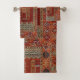 Oriental rug design in orange - an antique image is printed on this item - illustration from an antique book" "Oriental rugs, antique and modern" (1922)- it was edited and applied on this bath towel set by Alma Wad - "nomadic designs prevalent throughout Anatolia. Reciprocal latch-hooks form the background of the central field, on which are three upright panels containing octagonal discs; and latch-hooks surrounding lozenges and forming what may originally have been intended to represent the tree of life appear almost as conspicuously in the border. There are also combs, knots of destiny, and innumerable S-forms. The panel sat the upper and lower ends of the field and the reciprocal Vandykes are most suggestive of Ladiks, but in the place of pomegranates at the ends of the upright stalks are small checquered squares. Bergamos with such patterns are now rarely seen. " description of the detailed pattern from the book mentioned above .