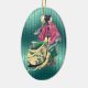 Vintage Kunst mit einer wunderschönen orientalischen Dame mit einem Fan über einem Aqua-grünen Muster, das an Sequins oder Drachenwaagen erinnert. Ihr langes Haar und ihre Bademäntel verwirbeln anmutig aus ihrer eleganten Figur.