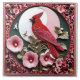 Bild eines orientalisch geschnitzten Steinpaneels mit einem Kardinal Vogel und Hollyhocks. Entwickelt mit künstlicher Intelligenz. So vielseitig: Fügen Sie das als ein Feature in Ihre Fliesendecke oder Duschwand ein, rahmen es und hängen es als Wandkunst, oder verwenden Sie es als Untersetzer unter heißen Pfannen und servieren Geschirr, um Schalter und Tischdecken vor Wärmeschäden zu schützen.