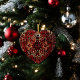 Orientales Teppichmuster in dunkelrot und cremefarben - ein altes Bild, das auf diesem herzförmigen Keramik-Ornament DRUCKT - ein zeitloses Design mit aufwändigen Details aus einem alten Buch - bearbeitet und mit zahlreichen Produkten von Alma Wad. Eine ausgezeichnete Option für jeden, der etwas Farbe und Wärme in seinen Weihnachtsbaum einfügen möchte.