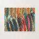 Das farbenfrohe Bild der Herbstblätter auf diesem originalen herausfordernden Puzzle ist ein Aquarellbild, das ich vor ein paar Jahren gemalt habe. Ich malte es aus einem Foto der Blätter eines phantastischen "Rhus typhina"-Baumes, der in meinem Garten wuchs. Der Baum wird auch als "Hirn-Horn-Sumach" bezeichnet. Die phantastischen Herbstblattfarben Gold, Rot, Grün und Blau sehen sehr schön aus und sie scheinen wie Flammen an einem kalten sonnigen Herbsttag. Diese originelle stilisierte Kunst könnte man auch als abstrakte Kunst sehen, aber die Farben sind, wie ich sie sah, als ich sie malte. Diese schönen Herbstblätter heben sich von diesem einzigartigen Geschenk hervor. Dieses kleine Kunstwerk wird den jeden Anlässen ein großartiges Geschenk machen. Dies ist ein anpassbares Puzzle, Sie können es personalisieren, indem Sie Ihr eigenes Bild und Text hinzufügen.