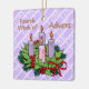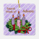 Our square violet ornament for the Fourth Week of Advent features an Advent wreath on the front atop a pattern of white diagonal stripes containing the word LOVE. Love is the theme of the week. A heartfelt sentiment appears on the back. + Front: The Advent wreath is made of evergreens and holly with all four candles depicted lit. The background is violet (or light purple or lilac) because it is the liturgical color of the pre-Christmas season. The mood having shifted last week from penitence, reflection, and preparedness to joy at the coming of the Savior, the color violet now emphasizes the royalty of Jesus as Son of God, Son of David, and King of Kings. + Image Credits: Black and white Advent wreath AI-generated by mimicoloringdesigns via Pixabay, modified and colorized by Saints_Aplenty; bow by Elionas also via Pixabay. + Back: A wish for LOVE that can be personalized.