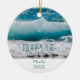 Weihnachtsornament. Beach Waves. Meer. Typografie. "Mein glücklicher Ort" Ferienzentrum und Jahr.