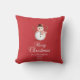Eine festliche Urlaubspostkarte mit einem bezaubernden Schneemann mit braunem Hut und gestreiftem Schal auf einem reichen roten Hintergrund. Personalisieren Sie mit Ihrem Familiennamen und Jahr für einen warmen und zeitlosen Weihnachtsgruß.
