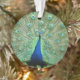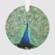 Der königlich blaue Pfauenkörper hebt sich von den gefiederten Schwanz Federn in Grüntöne und Blau ab. (Bild auf beiden Seiten)