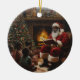 Capture the magic of Christmas with this heartwarming ornament featuring Santa Claus reading to a group of children by a cozy fireplace. This beautiful scene showcases the joy and warmth of the holiday season, with a glowing fire casting a soft light over the children, as they sit mesmerized by Santa's story. The ornament features a richly decorated Christmas tree adorned with ornaments and a star, while festive decorations line the mantel above the crackling fire. The vibrant red of Santa's suit contrasts beautifully with the warm, golden hues of the fire, creating a captivating display. This customizable ornament makes the perfect keepsake for your holiday collection, adding a touch of tradition and warmth to your tree for years to come.
