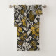 Ornate floral pattern with large gold flowers and cream leaves on a black background. The design is intricate, vintage-inspired, and elegant.