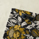 Ornate floral pattern with large gold flowers and cream leaves on a black background. The design is intricate, vintage-inspired, and elegant.