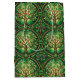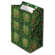 Ornate shopping bag featuring a repeating pattern of lush green trees with vibrant red berries on a dark background, creating an elegant and rich design.
