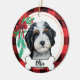 Cet ornement de bernedoodle Tricolor avec arrière - plan de buffle rouge et guirlande et arc de Noël - L'art a été peint à la main par moi et rendu disponible comme cet adorable ornement! Ajoutez n'importe quel texte (suggéré : "I ❤️ my doodle" ou votre nom de bonté) visitez www.curella.net pour un portrait personnalisé, des autocollants, et plus encore.