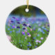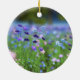 Un champ de fleurs de maïs dans les tons bleu profond et pâle, violet, lavande et rose, avec des feuilles vert pâle.