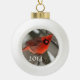 Photographie du Cardinal du Nord par Kathy Glyshaw. Ornements annuels représentant des cardinaux