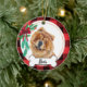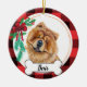 Ornement Chow Chow avec arrière - plan de buffle rouge et guirlande et arc de Noël - L'art a été peint à la main par moi et rendu disponible comme cet ornement adorable! Ajoutez n'importe quel texte (suggéré : "Je ❤️ ma boue" ou le nom de votre sueur) visitez www.curella.net pour un portrait personnalisé, des autocollants, et plus encore.