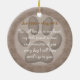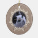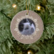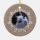 Ornement commémoratif de chats en dentelle vintage - personnalisez avec les photos de votre animal, le nom et la date de votre animal - magnifiquement créé sur un motif de lacey brun sobre avec dentelle cadre bordé avec imprimé de chat transparent sur le dos