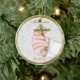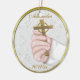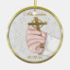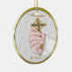 Un ornement en céramique de beau souvenir pour le baptême ou le baptême du bébé. La main du bébé de caractéristiques de conception tenant la croix d'or sur l'arrière - plan de dentelle avec le cadre de regard d'or. Facile à personnaliser pour votre occasion spéciale.