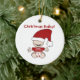 Un bébé avec un casquette plein de texte rouge et rouge enfant qui dit "bébé de Noël" sur un ornement vous pouvez facilement customiser pour le premier Noël du bébé.