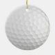 C'est un ornement de Noël rond et recouvert de céramique recouvert d'une photo originale d'une balle de golf.