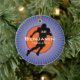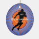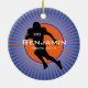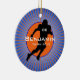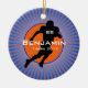American Football Player Design Ornament avec un arrière - plan starburst orange et bleu avec personnalisation personnalisable à l'avant et à l'arrière.