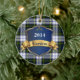 Ornement en céramique de plaid coloré, avec le motif bleu, vert, blanc, noir, et jaune traditionnel de plaid de tartan de robe de Gordon, comme arrière - plan. Les graphiques d'un bouclier bleu et goldtone aiment la plaque, a le texte noir et blanc fait sur commande prêt à personnaliser. Grand ornement de regard d'héritage familial. Fait un grand cadeau ornementer et la décoration pour d'autres usages autour de la maison.