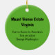 Cet ornement de porcelaine de rond comporte une image de domaine de Mount Vernon en Virginie. Ce secteur historique était à la maison au premier président de l'Amérique, George Washington. Il est mort ici dans sa en haut chambre à coucher, et est étendu pour se reposer sur cette propriété. L'information d'emplacement est sur l'inverse en texte facile à lire au-dessus d'un arrière - plan vert.