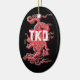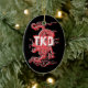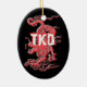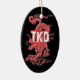 Ornement de Noël avec les lettres TKD et un dragon rouge.