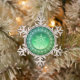 Un seul cristal de glace parfait, dans des teintes dégradées de vert, bleu et blanc ; encadré par un design de flocon de neige lacé...donne presque un globe de neige comme effet. Le cristal de glace est en fait un modèle, vous permettant de remplacer par une photo de votre famille ou de votre scène d'hiver de votre choix, si vous préférez.