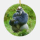 Ce gorille semble être dans la pensée profonde comme il des doigts une feuille de laitue. Il fait un ornement merveilleux.