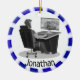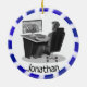 Ornement de jeu vidéo avec cadre extérieur bleu et blanc et texte personnalisable à l'avant et à l'arrière,
