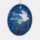 Personnalisez et égayez votre sapin de Noël avec ce magnifique ornement de Noël de la colombe blanche "One of a Kind" ! Il comprend une colombe blanche de Noël volant parmi les étoiles blanches portant une branche d'olivier avec des rubans rouges et verts... Je souhaite à tous un ..."Joyeux Noël ! Il s'agit d'une création artistique originale de l'artiste Kerry Miller.