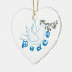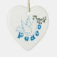 Décor de paix avec une colombe tenant une branche d’olivier et le mot Paix le long de la poitrine de la colombe avec le signe de paix des années 60.