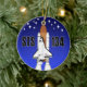 Commémorez le dernier lancement de l'effort de navette spatiale avec cet ornement. Comporte la navette sur un arrière - plan bleu-foncé honoré par 14 étoiles représentant les 14 astronautes perdus pendant la mission de 30 ans du programme.