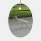 Une photo d'un bel ibis blanc faisant une promenade sur un ornement