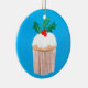 Un ornement de Noël avec un cupcake de chaque côté. Le givre blanc est surmonté d'une épine de sainte et de ses baies rouges et provient d'un collage en papier peint à la main par Judy Adamson. Des tasses à café et des cartes de Noël avec ce design sont également disponibles.