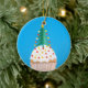 Un ornement de Noël avec un cupcake de chaque côté. Le givre blanc est surmonté d'un sapin de Noël décoré et provient d'un collage en papier peint à la main par Judy Adamson. Des tasses à café et des cartes de Noël avec ce design sont également disponibles.