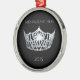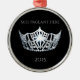 Ornement de Noël montré dans une forme ronde avec une jolie couronne argentée, avec le texte de l'arrière - plan gris argenté et noir de couleur. Montré avec le ruban rouge et l'argent bordés. Customisez cet article avec votre nom, date ou autre personnelle de reconstitution historique.